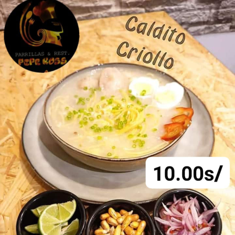 Ven a Parrillas y Restobar Pepe Ross y disfruta de un Caldo Criollo peruano único, lleno de tradición, aroma y pasión por la buena comida.